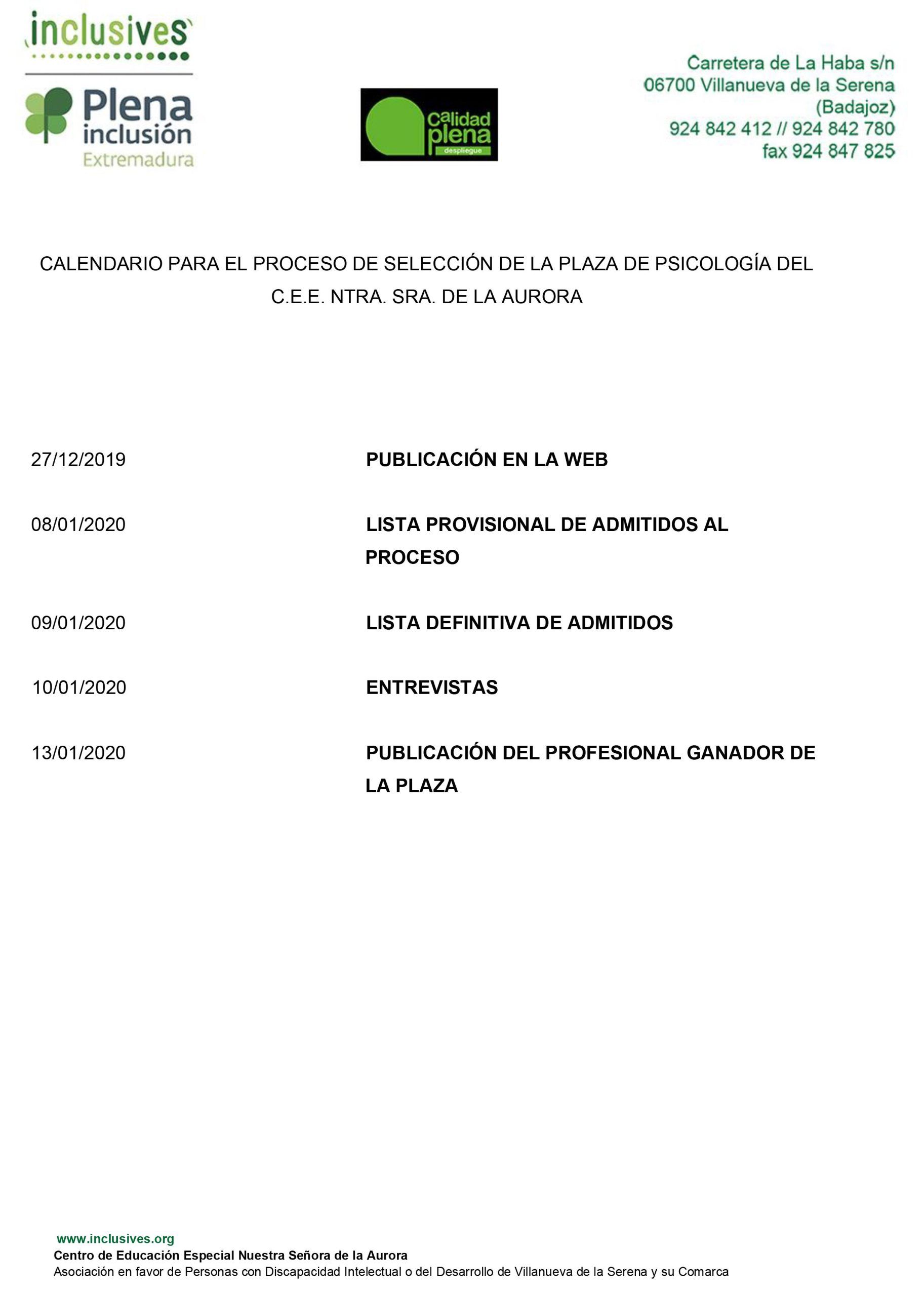 El plazo para participar en el proceso de selección se inicia hoy 27 de diciembre y finaliza el 8 de enero de 2020. Ese mismo día publicaremos la lista provisional de candidatos admitidos al proceso de selección; la lista definitiva de candidatos se publicará el día 9 de enero. El 10 de enero se realizarán las entrevistas a los candidatos con mayor puntuación y el 13 se publicará el candidato ganador de la plaza.